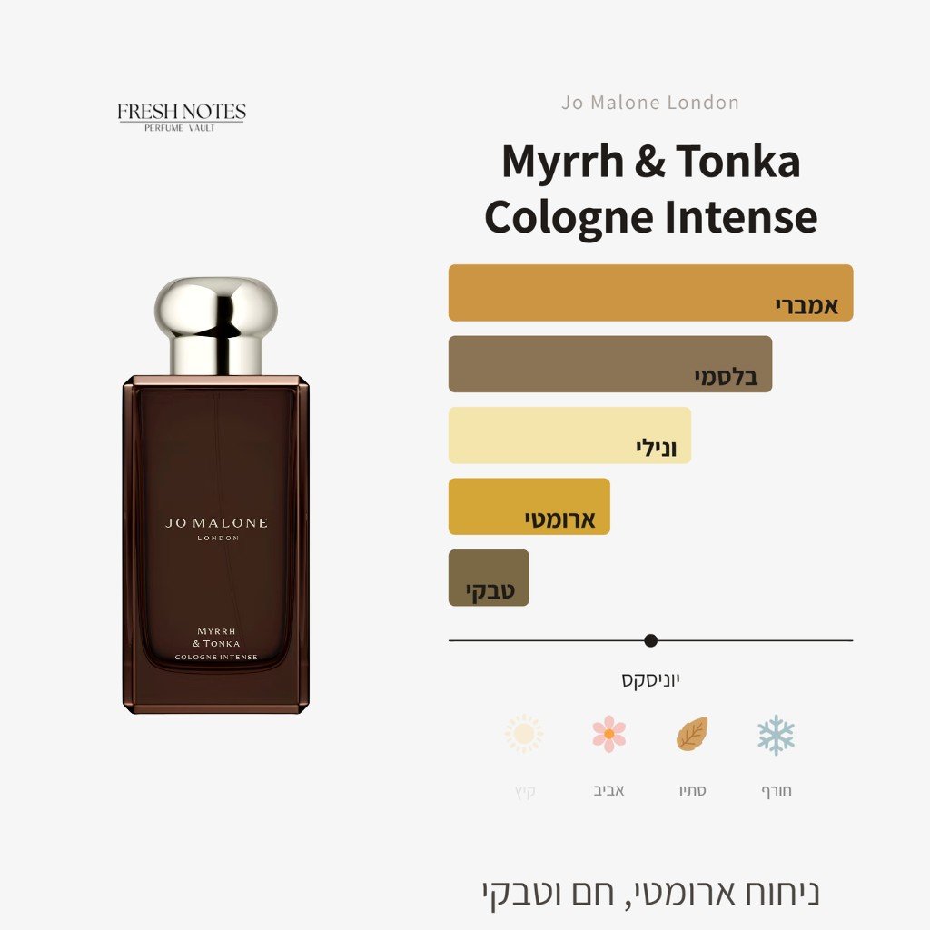 מיר אנד טונקה (Myrrh & Tonka) מבית ג׳ו מלון לונדון (Jo Malone London) הוא ניחוח ארומטי עם עומק ענברי בלסמי, כזה שנפתח בלבנדר נקי ומעט עשבוני,