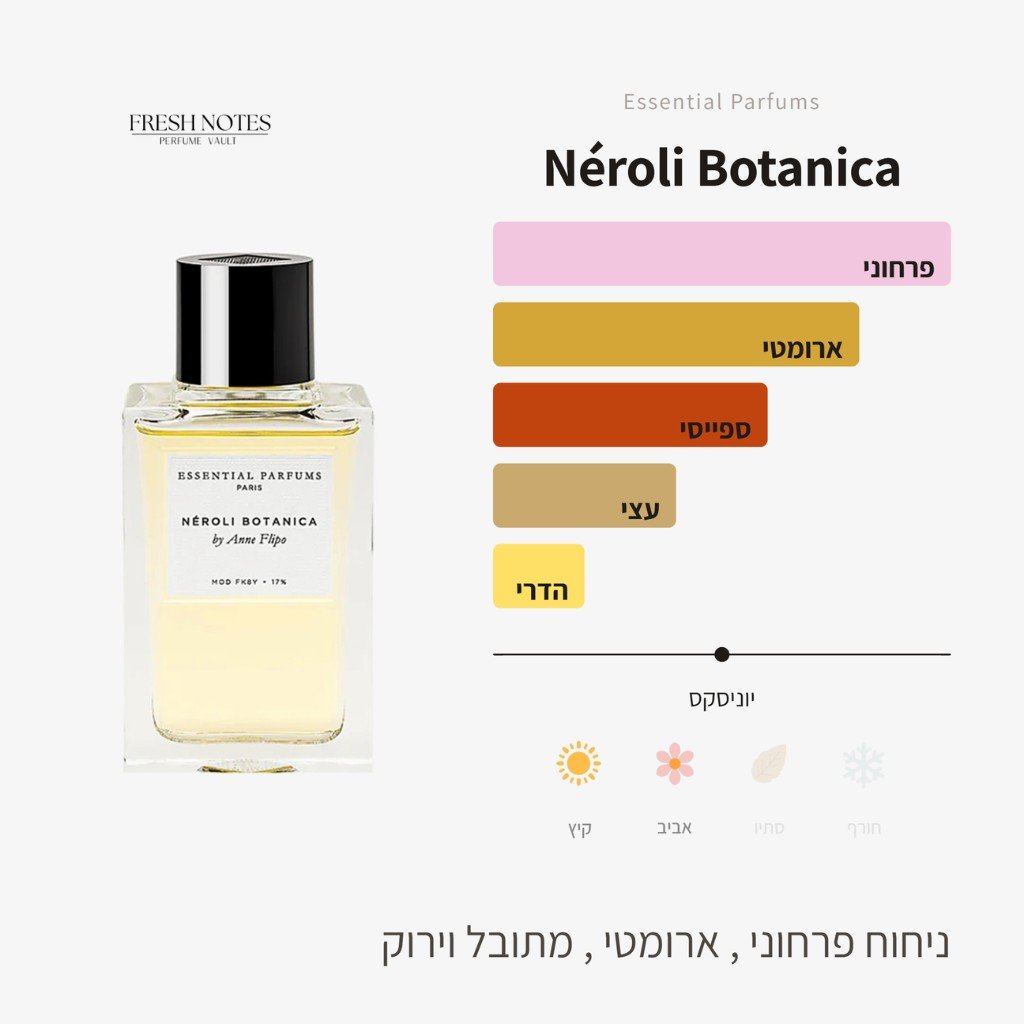 הבושם Néroli Botanica נרולי בוטניקה הוא יצירה מרתקת של המאסטרית אן פליפו (Anne Flipo), אשר החליטה לחקור את פריחת ההדרים הלבנה דרך זוויות לא שגרתיות.