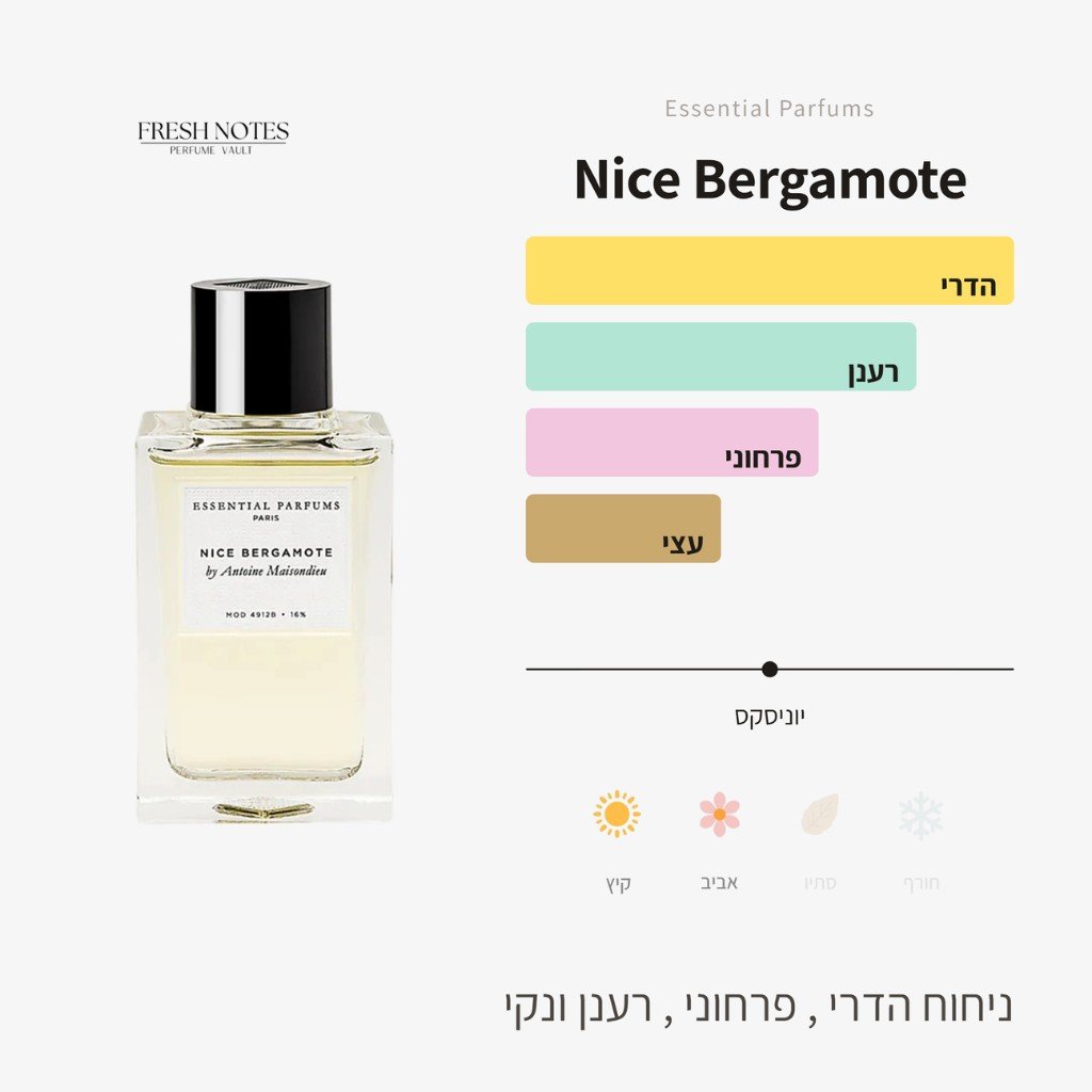 הבושם Nice Bergamote (נייס ברגמוט) מבית אסנשיאל פרפיום הוא מחווה לברגמוט טבעי ממחוז קלבריה.