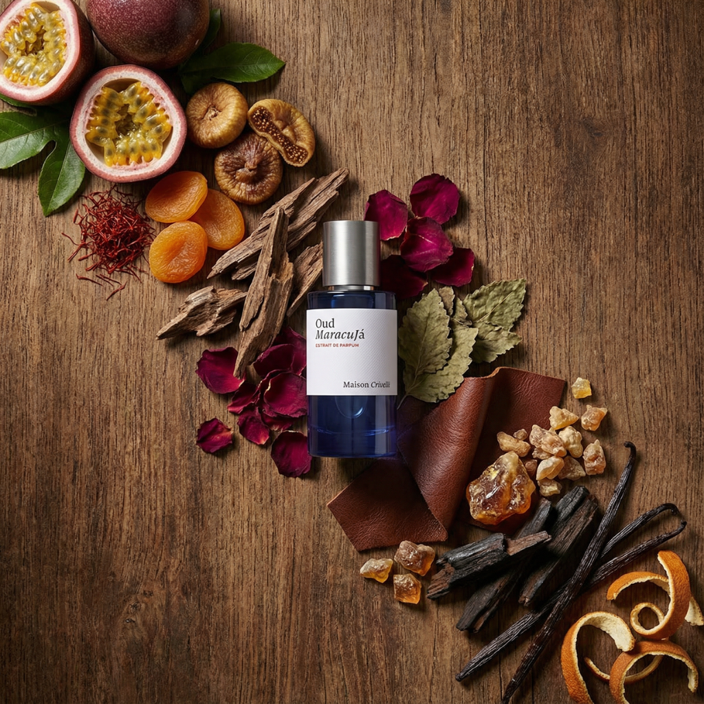 הבושם Oud Maracujá אוד מרקוז'ה הוא חוויה חושית שמתבססת על ניגוד קיצוני ומסקרן, המפגש בין הרעננות העסיסית של הפסיפלורה לבין העומק הטרופי והחרוך של האוד.