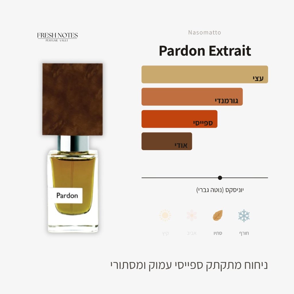 האף מאחורי הניחוח המאסטר אלסנדרו גולטיירי (Alessandro Gualtieri), המכונה בתעשייה "The Nose", יצר את Pardon מתוך חזון להגדיר מחדש את האלגנטיות הגברית המודרנית. סימן ההיכר של המותג הוא ריכוז ה-Extrait de Parfum הדרגה הגבוהה ביותר בעולם הבישום. המשמעות היא הרכב המבוסס על שמנים טהורים וכמעט ללא אלכוהול מתנדף. התוצאה היא בושם ש"יושב" על העור, מתפתח לאט, ומקרין עוצמה וביצועים למשך שעות ארוכות, הרבה מעבר לסטנדרט הרגיל.