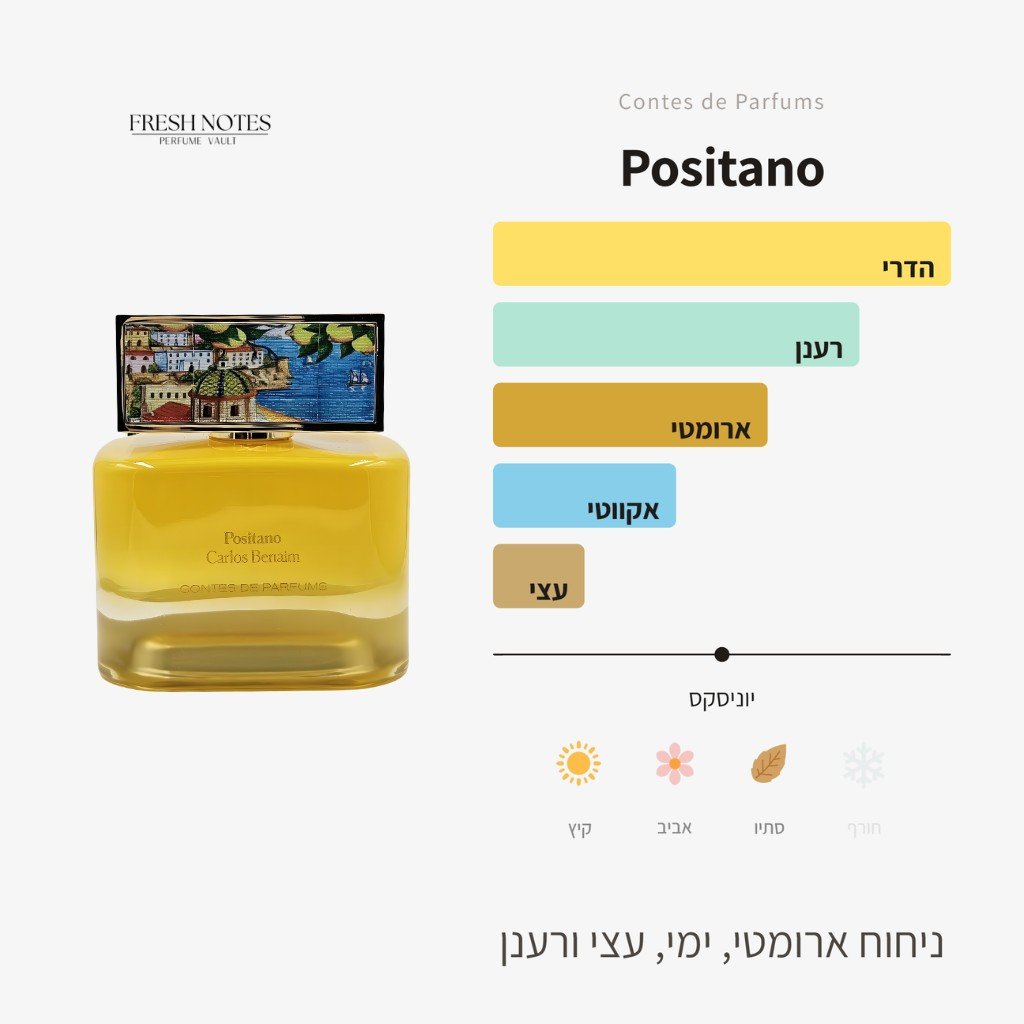 אם אתם מחפשים דוגמית של בושם קיצי שיש בו גם עומק וגם סדר, פוזיטנו (Positano) הוא כיוון חזק לבדיקה.