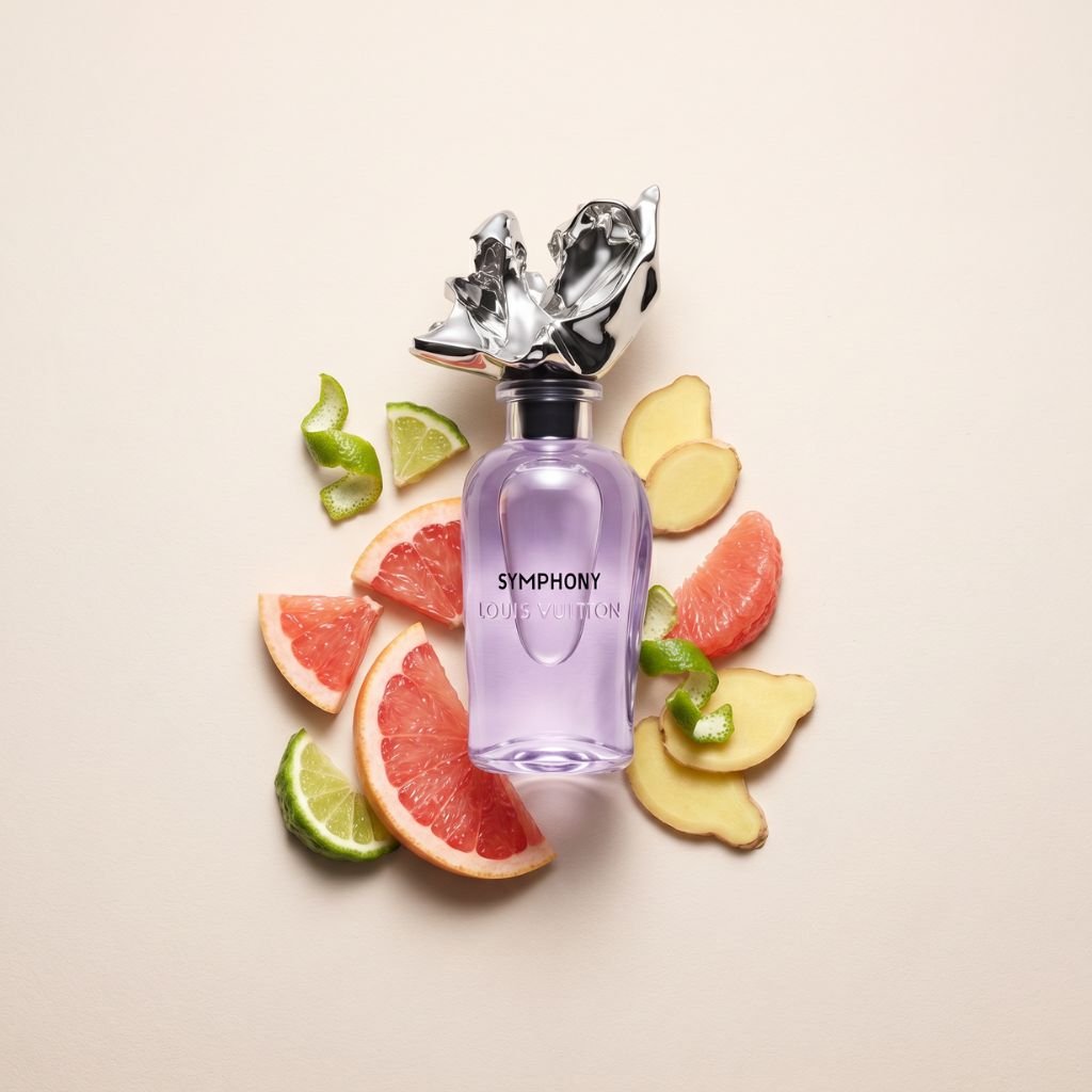 בקצרה: דוגמית סימפוני (Symphony) מבית לואי ויטון (Louis Vuitton), מאת ז'אק קבלייה בלטרוד (Jacques Cavallier Belletrud), היא ניחוח הדרי ארומטי עם אקורד אשכולית, ג'ינג'ר וברגמוט, שמרגיש חד, מבריק ומאוד מרוכז, עם רעננות נקייה וקצת מתובלת.